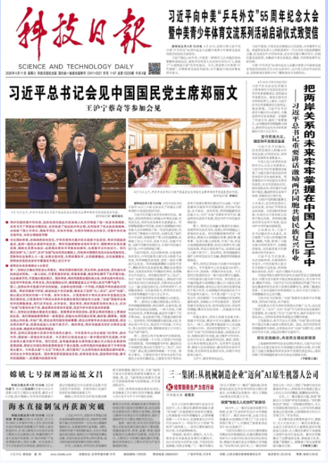 科技日报头版报道我室主任谢和平院士团队海水制氢研究成果